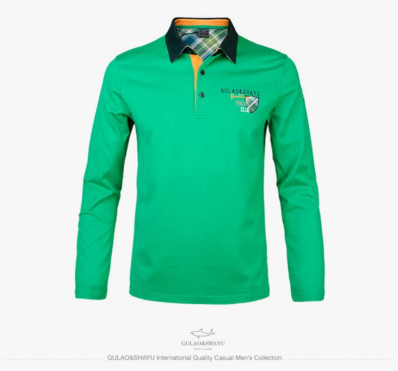 古老鯊魚新款男裝T恤純棉勳章商務休閑翻領男士 - 40188821837